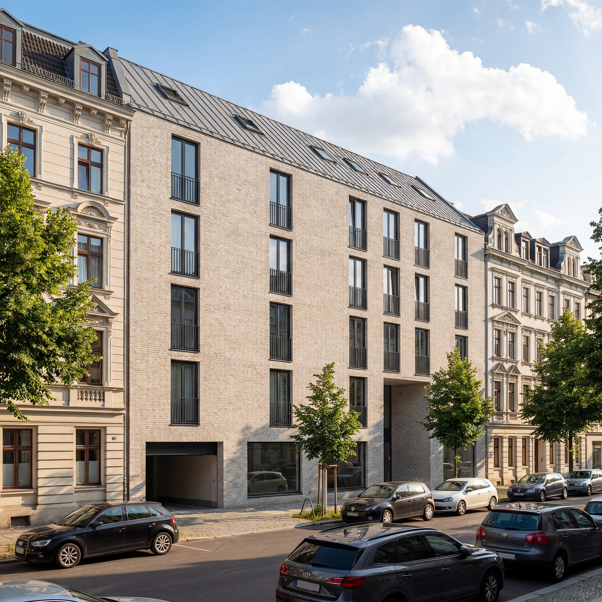 Tools: Vectorworks · 3ds Max · Corona Renderer · PhotoshopDiese Visualisierung zeigt eine Baulückenbebauung als präzisen Lückenschluss im innerstädtischen Kontext von Köln: ein klar proportionierter Neubaukörper, der die Straßenkante schließt und sich über Materialität, Dachform und Fassadenrhythmus an Maßstab und Tektonik der Nachbarbebauung orientiert. Ziel ist eine realitätsnahe Darstellung von Volumen, Adresse und Alltagstauglichkeit, als Grundlage für Entwurfsbewertung und Kommunikation.