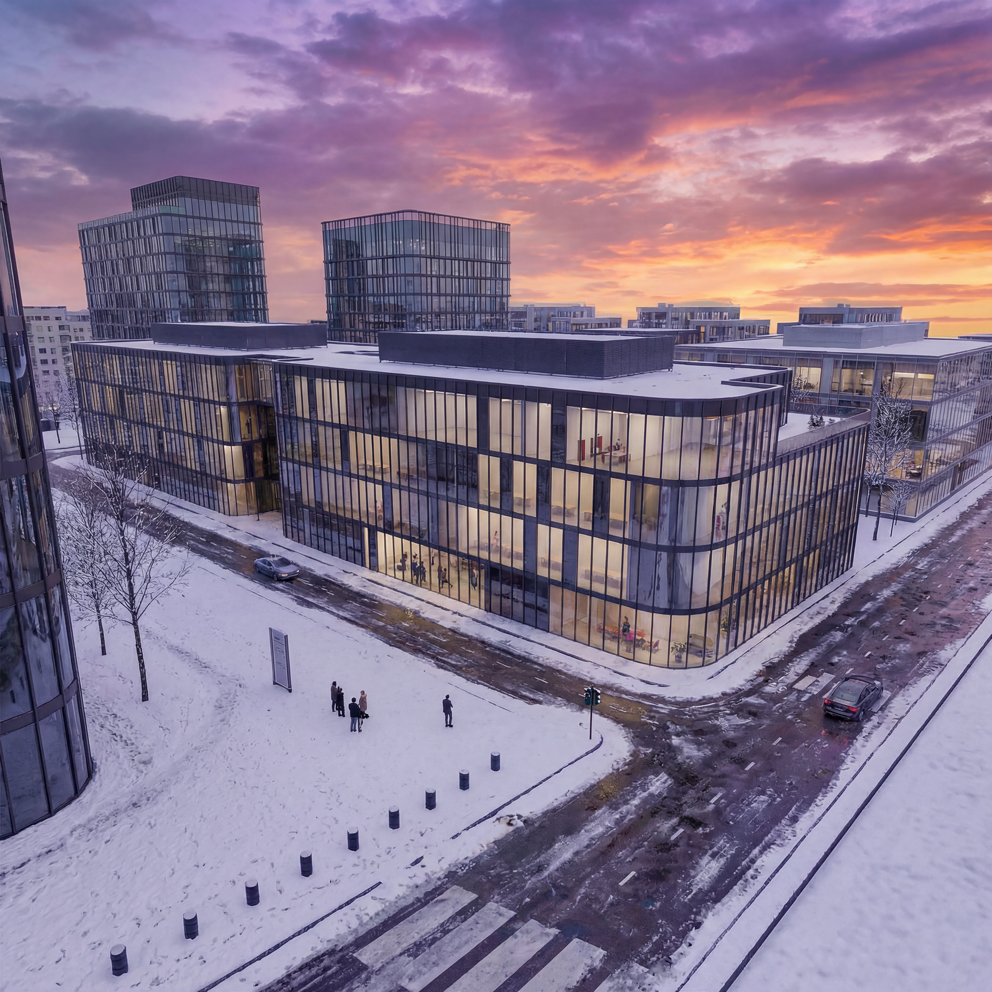 Tools: 3ds Max · Corona Renderer · PhotoshopDiese Visualisierung interpretiert ein Life-Science-Gebäude als klar strukturierten, flexibel nutzbaren Standort für Forschung und Büro. Der Fokus liegt auf einer realistischen Darstellung von Architektur, Nutzung und Stadtraum – mit dem Ziel, Entscheidungsprozesse und Vermarktung frühzeitig zu unterstützen.